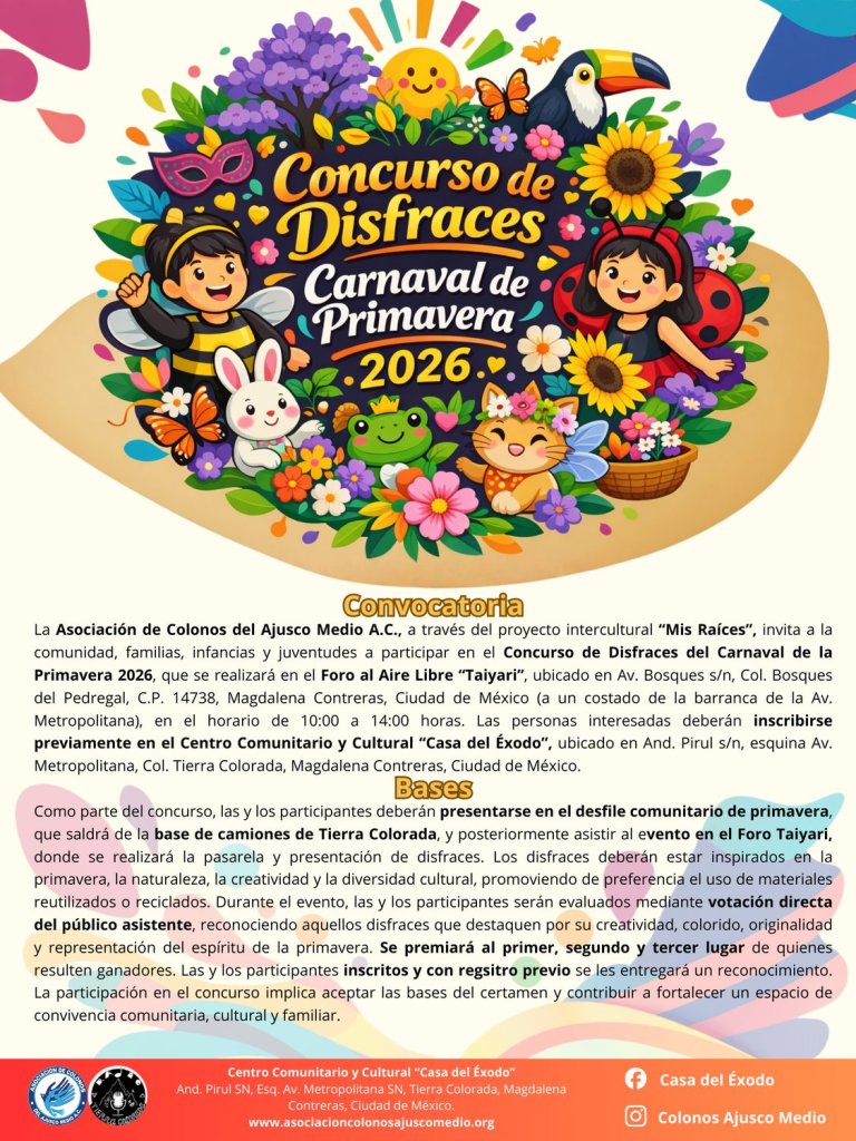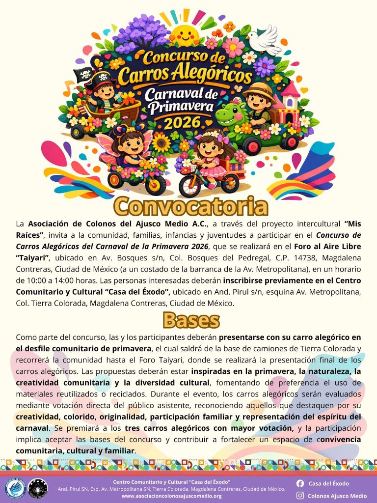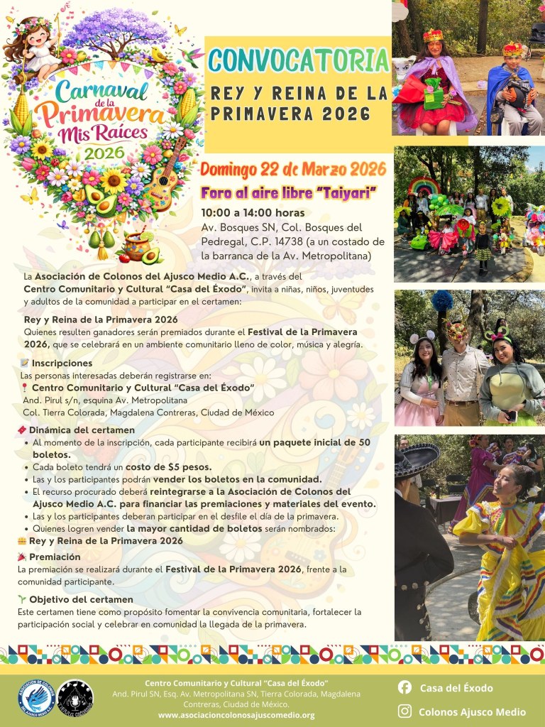 Desde 2014, la Asociación de Colonos del Ajusco Medio A.C. trabaja por el bienestar de la comunidad a través de proyectos educativos, culturales y sociales. Con iniciativas como el Centro Comunitario «Casa del Éxodo», huertos comunitarios, mejora de viviendas y programas de apoyo integral, busca fortalecer el desarrollo y la calidad de vida en la región.