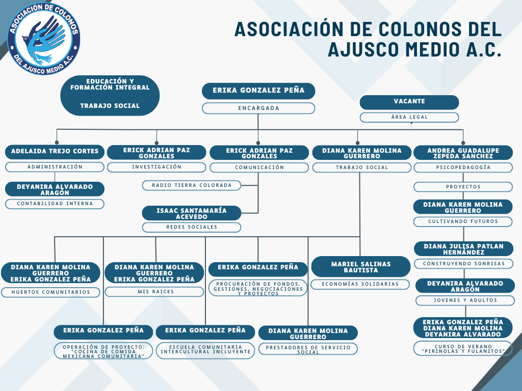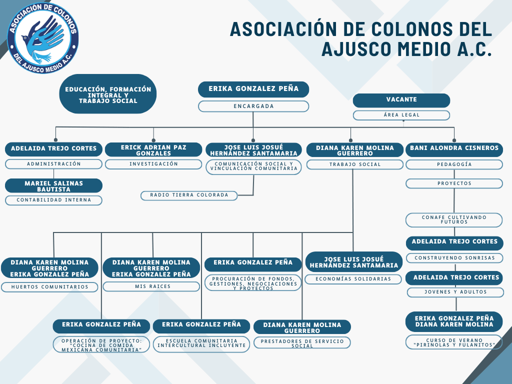A continuación, se muestra la organización de las áreas y proyectos que se trabajan en el Centro Comunitario y Cultural «Casa del Éxodo», las cuales son organizadas por las comisiones de Educación y Formación Integral y la comisión de Trabajo Social.