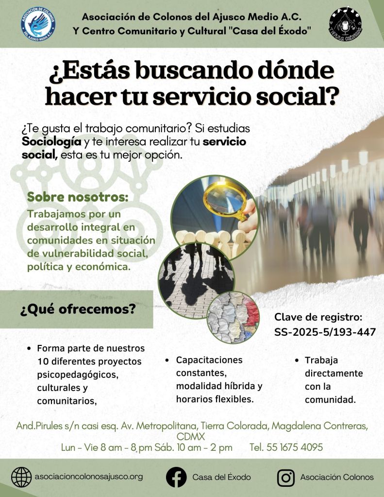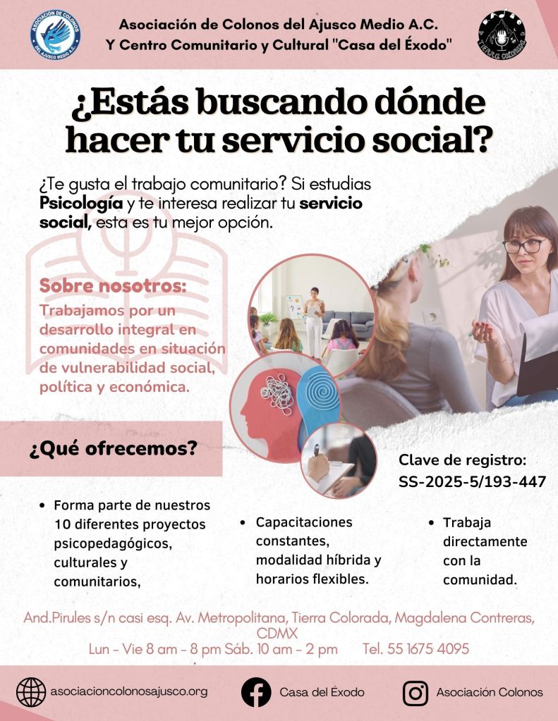 Tenemos convenio con la UNAM, UPN y UACM. Solicitamos de diversas carreras como son: